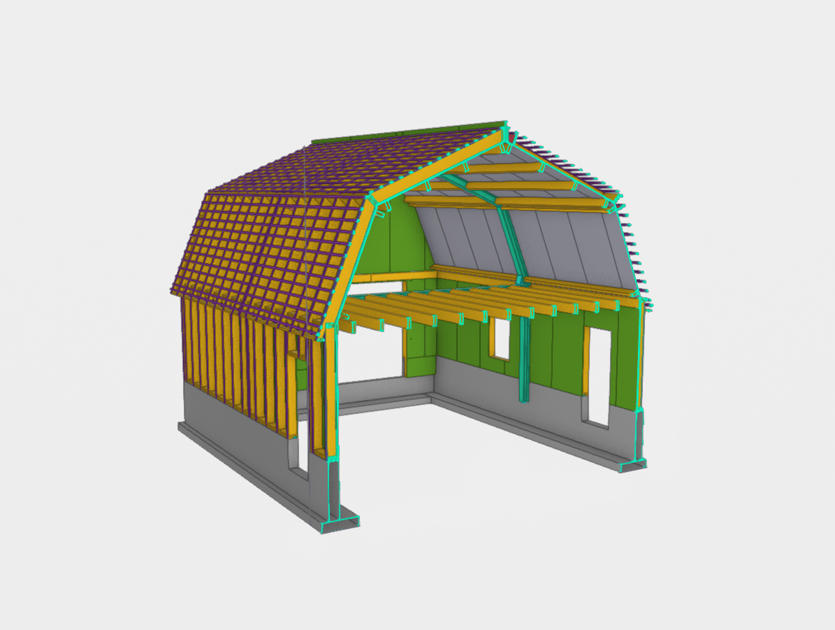 Het productieproces van een houtskeletbouw-element begint bij de tekening. Wij werken met het tekenprogramma Tekla hierin tekenen wij onze producten precies zoals de opdrachtgever dat in gedachten heeft. Nadat de tekeningen zijn gemaakt worden ze doorgegeven aan onze CNC machine. Voor de productie van HSB-elementen gebruiken wij de Hundegger SpeedCut SC III deze veelzijdige machine biedt een wereld aan bewerkingsmogelijkheden: afkorten, kepen, frezen, boorbewerkingen en ga zo maar door. Wanneer het hout bewerkt is worden de elementen in elkaar gezet. Als dit gedaan is begint de afwerking: de elementen kunnen geïsoleerd worden en voorzien van elektriciteit. Ook hier geldt weer dat er talrijke mogelijkheden zijn, wij maken het product precies zoals u dat in gedachte hebt. Ten slotte zorgen wij dat het geheel goed verpakt wordt zodat het transport snel, soepel en droog kan plaatsvinden.